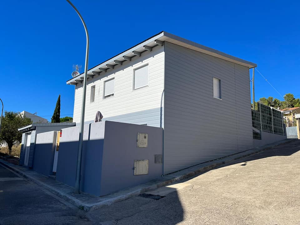 Modelo nórdico plus Sot de Ferrer 170m2 de vivienda más 25 m2 de porche y piscina de poliéster de 6x3. Consta de 5 hab, 2 baños completos, salón cocina y salón exterior. Precio desde 115.000 euros