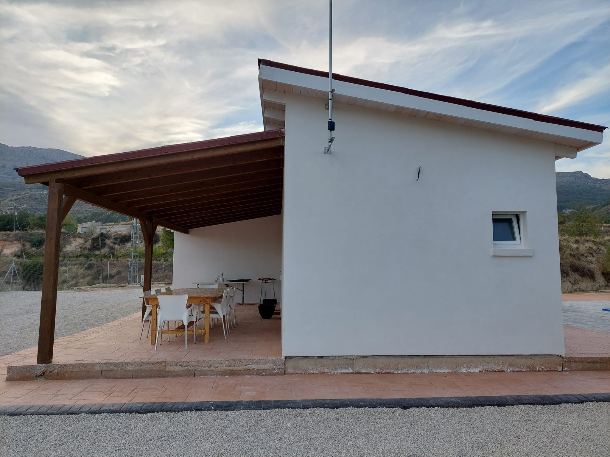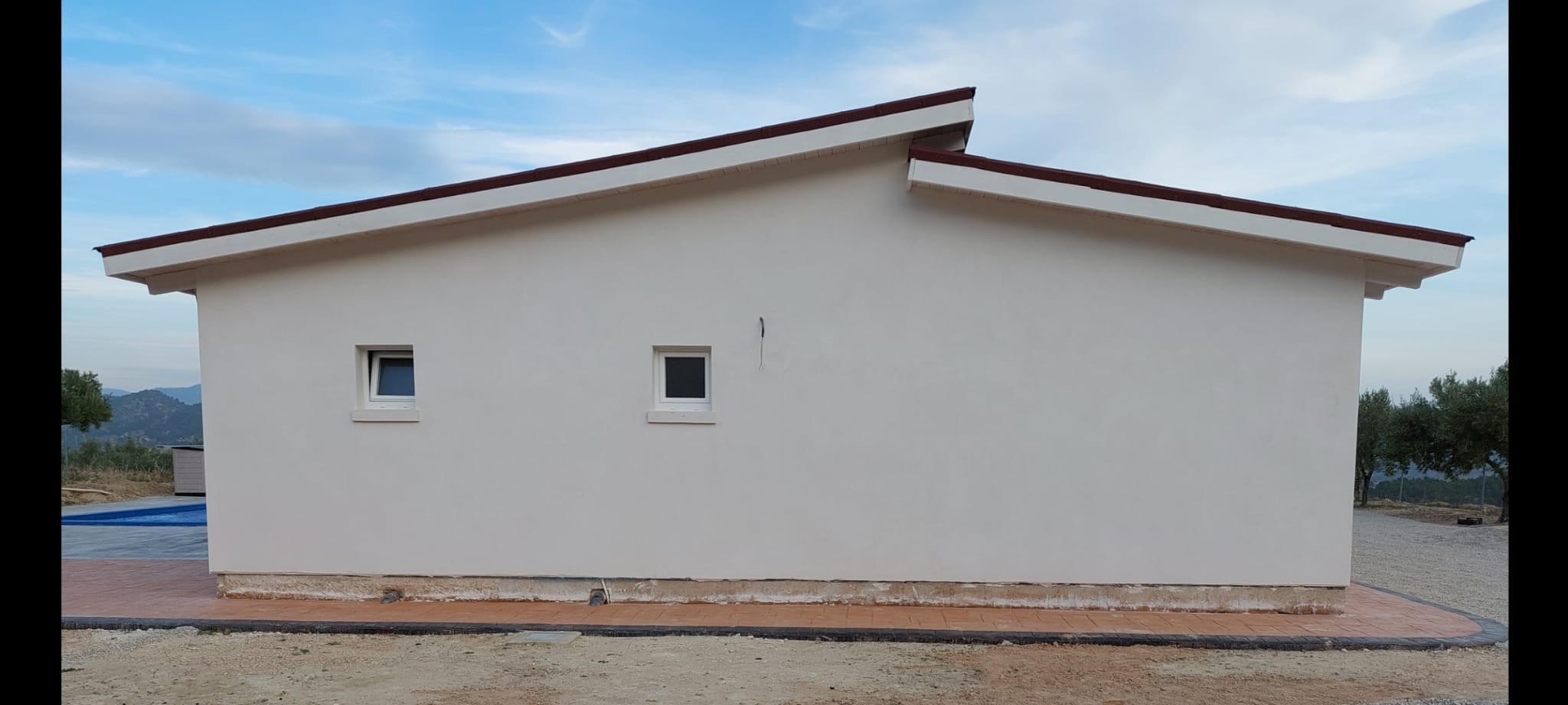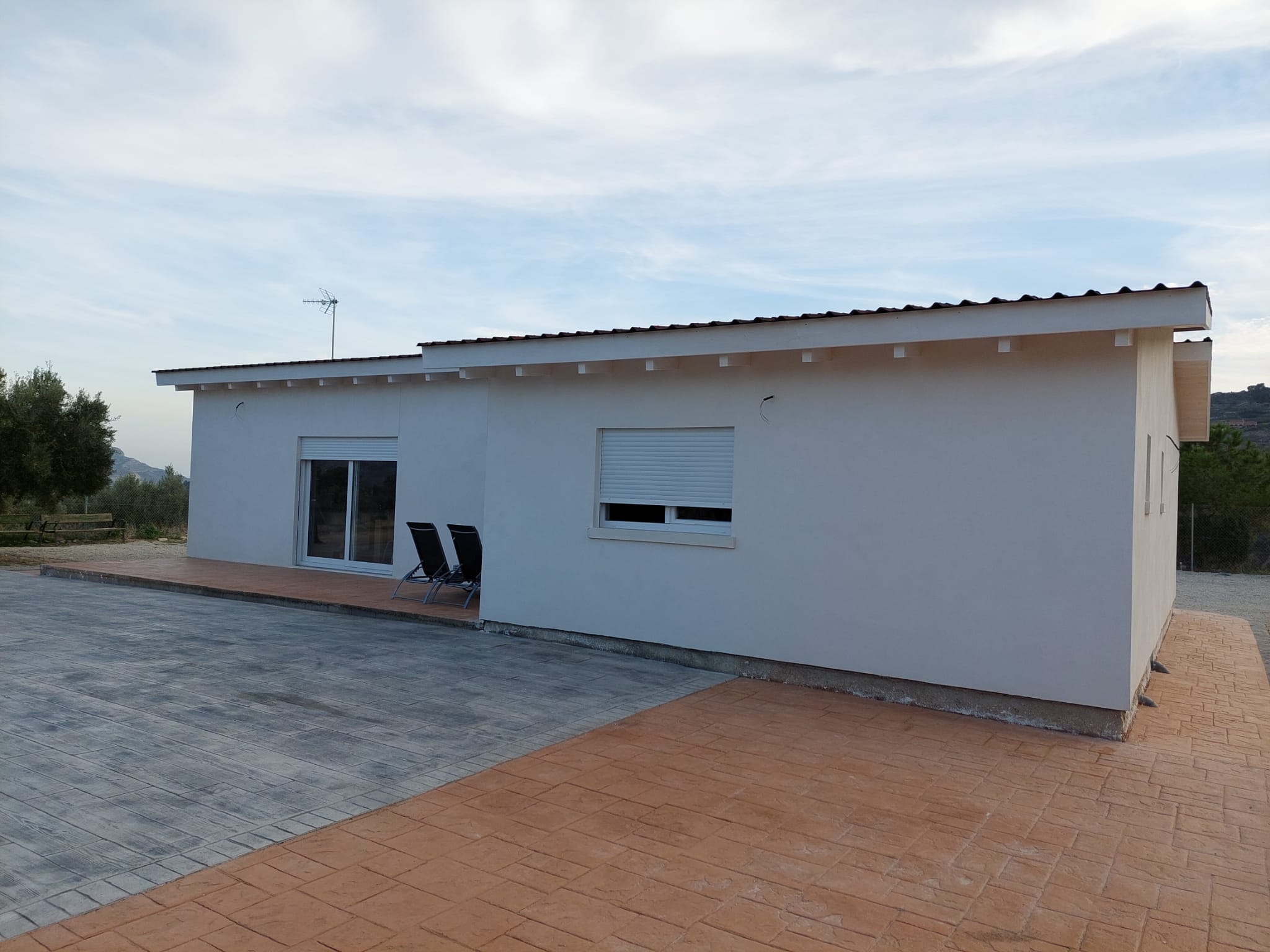 Vivienda modelo nórdico Xixona 123 M2, consta de 3 hab, 2 baños, cocina-salon, lavadero y terraza techada. Fachada sin mantenimiento con terminación en mortero liso e interiores en Pladur. Precio desde 72000 euros.