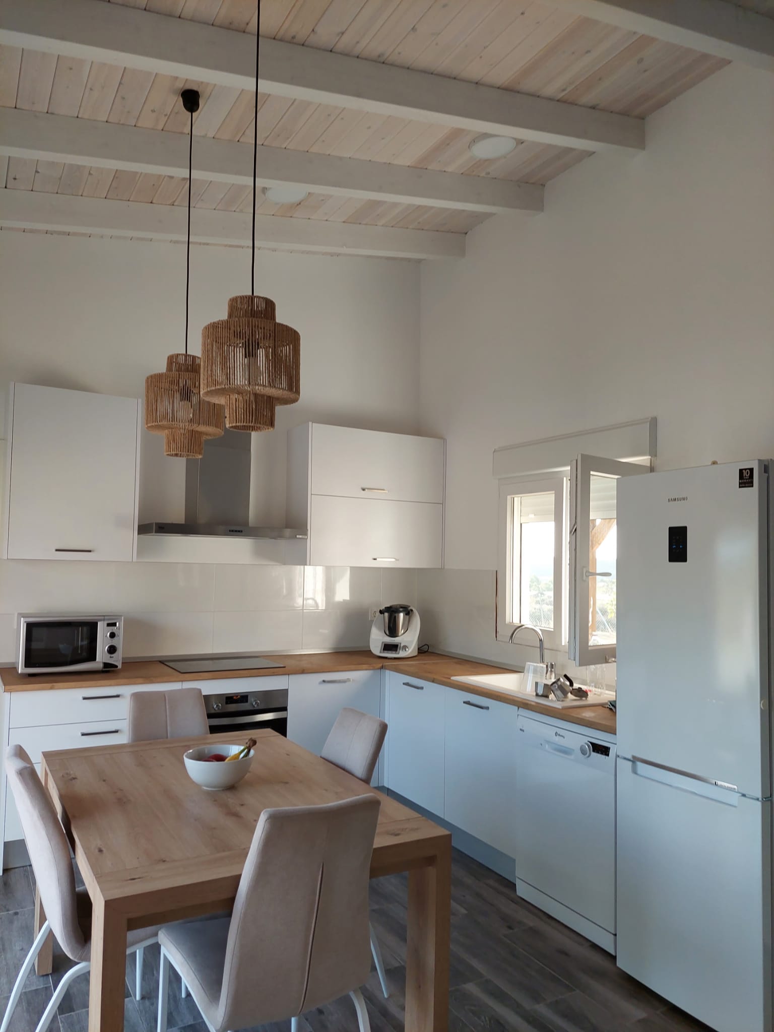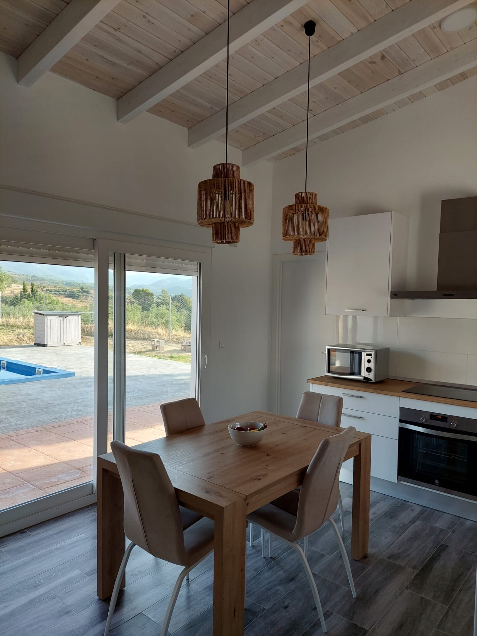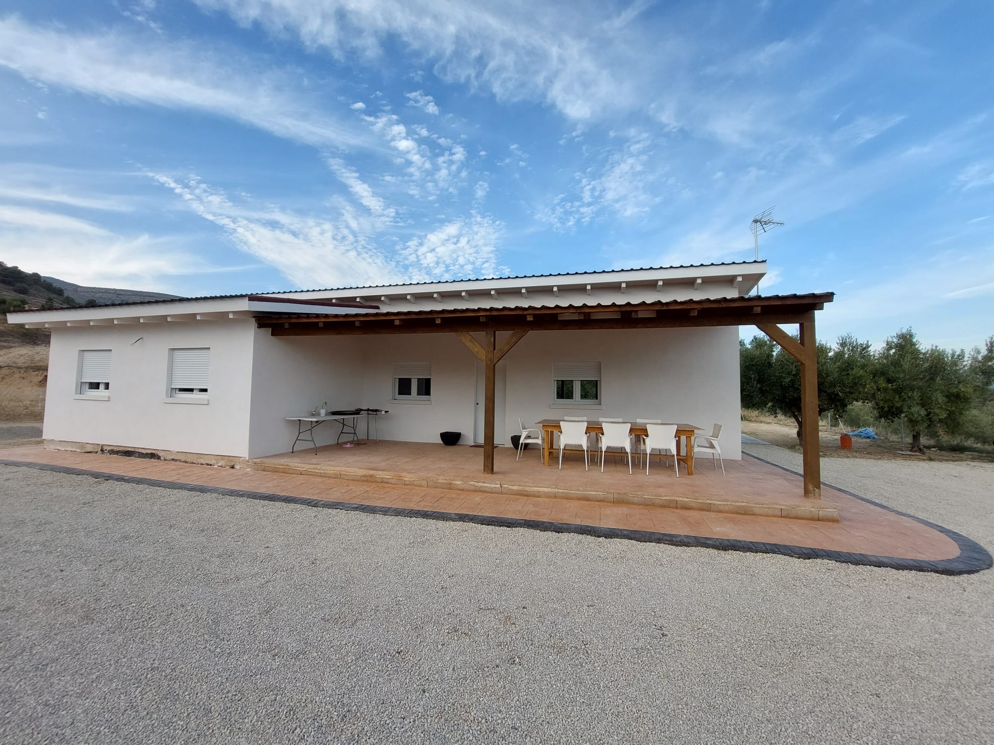 Vivienda modelo nórdico Xixona 123 M2, consta de 3 hab, 2 baños, cocina-salon, lavadero y terraza techada. Fachada sin mantenimiento con terminación en mortero liso e interiores en Pladur. Precio desde 72000 euros.